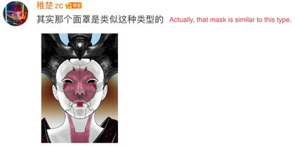 - wore a guanyin mask in the first arc. image can be found in zhichu's comment here
